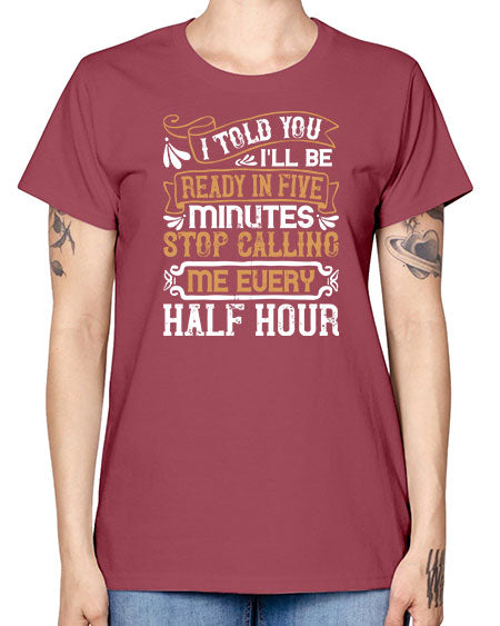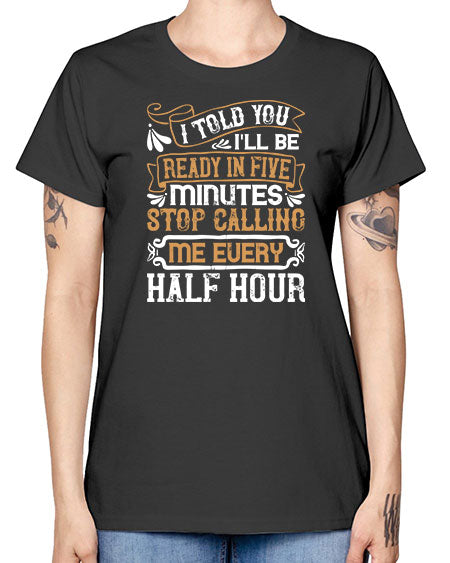I told you Ill be ready in FIVE minutes stop calling me every half hourr Style 68# - pig- Missy T-Shirt