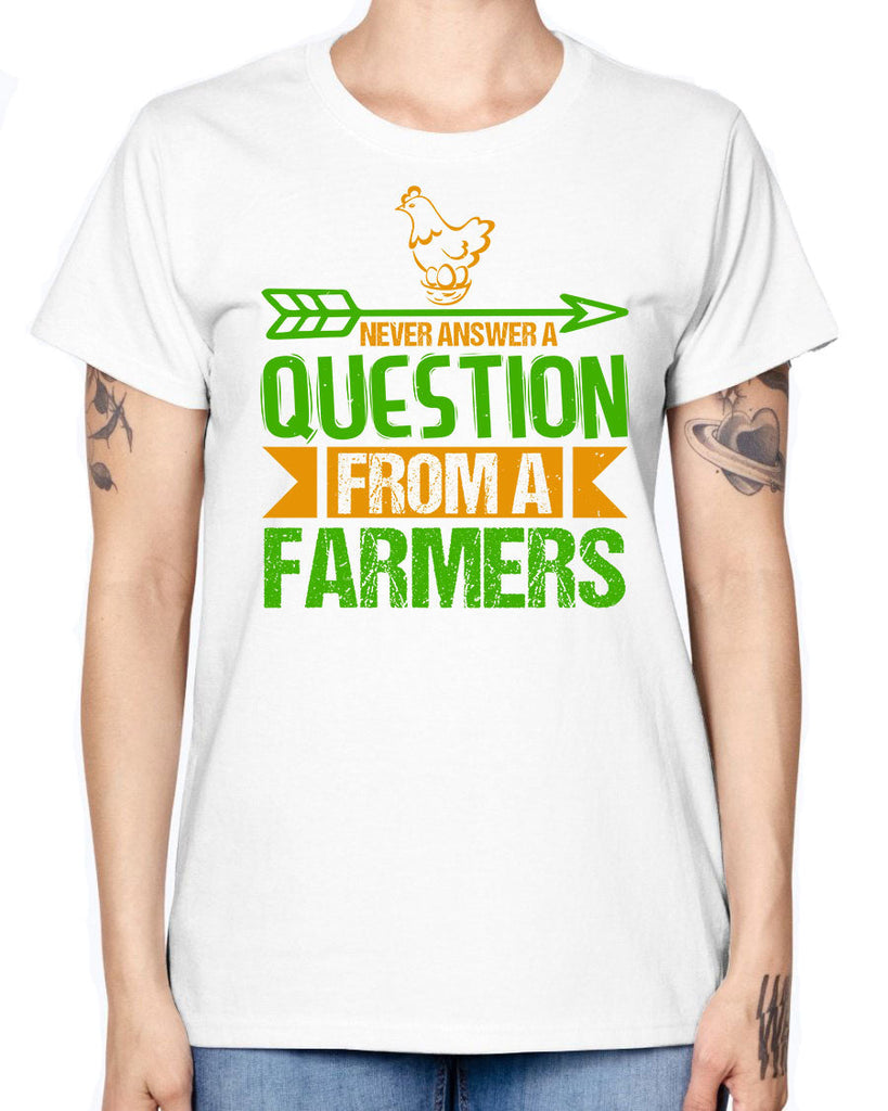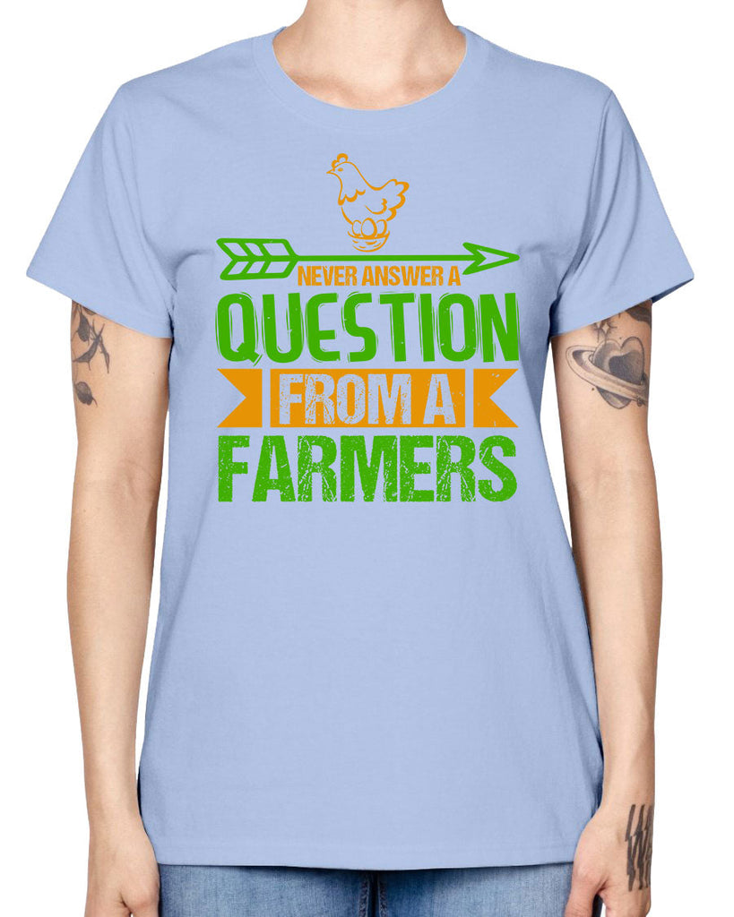Never answer a question from a farmers - Farm & Garden- Missy T-Shirt