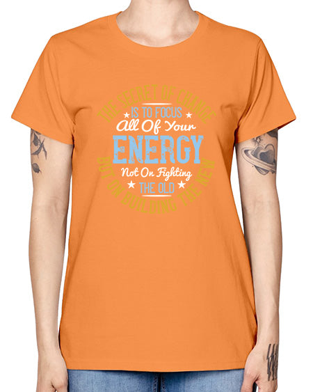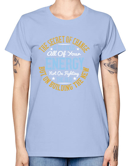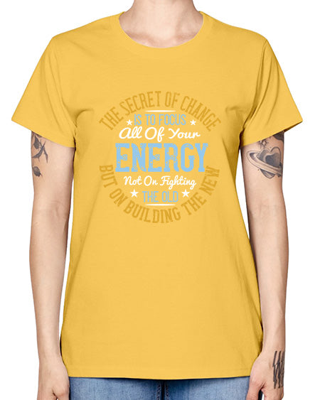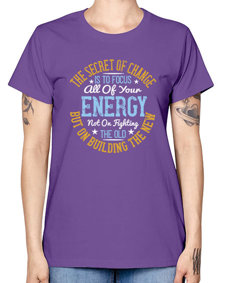 the secret of change is to focus all of your energy not on fighting the old but on building the new 561# - yoga- Missy T-Shirt