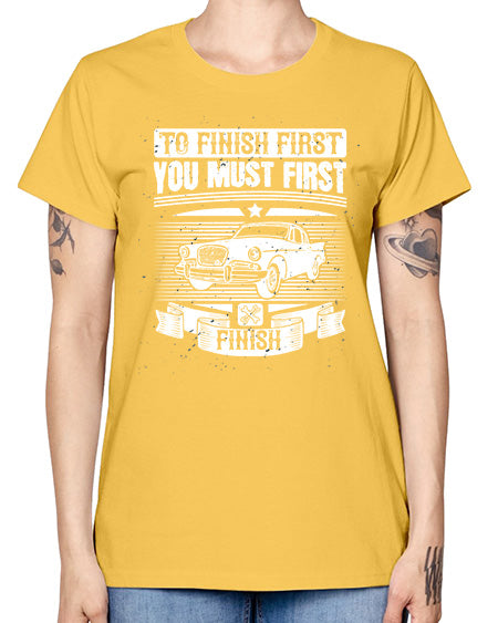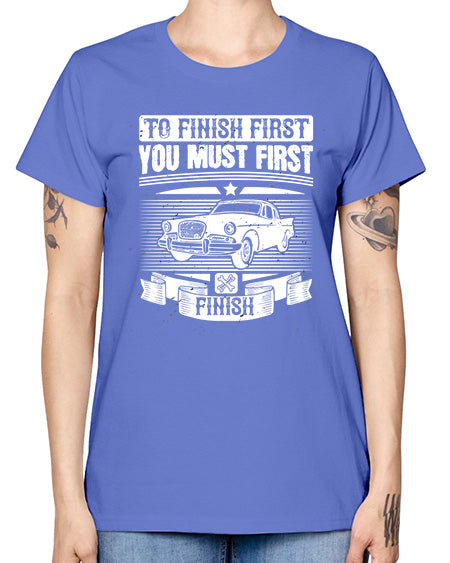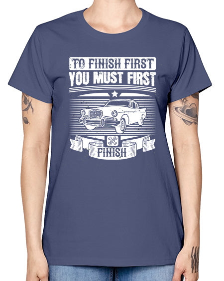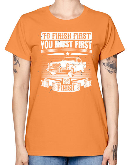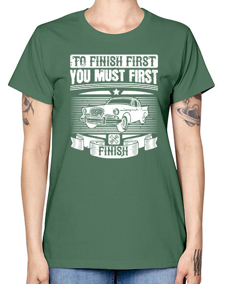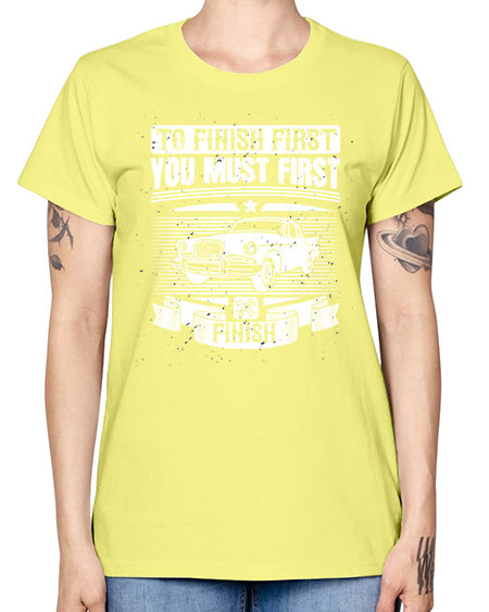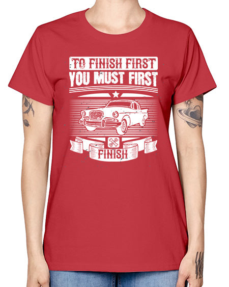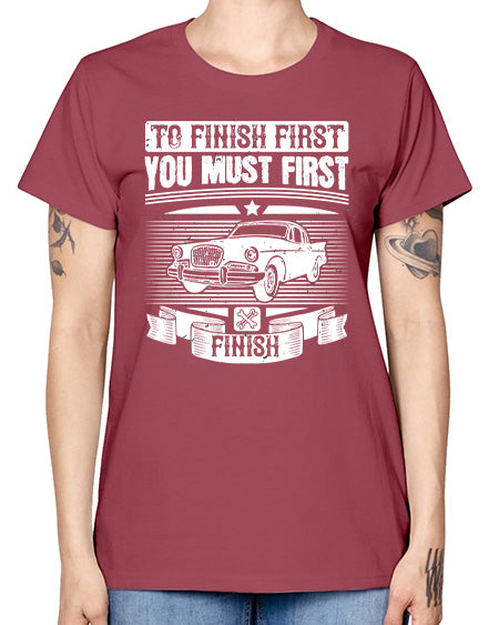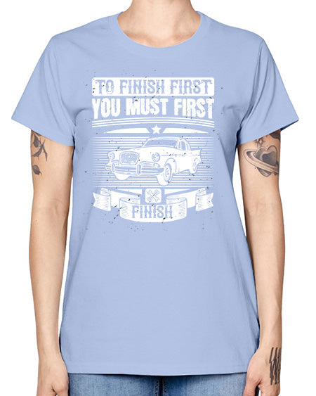 To finish first you must first finish 75# - car- Missy T-Shirt