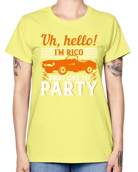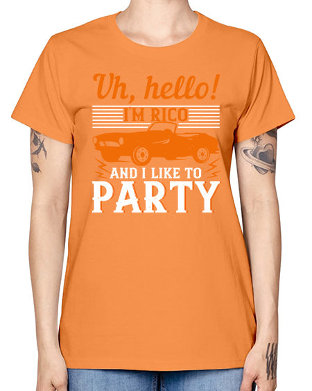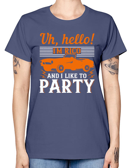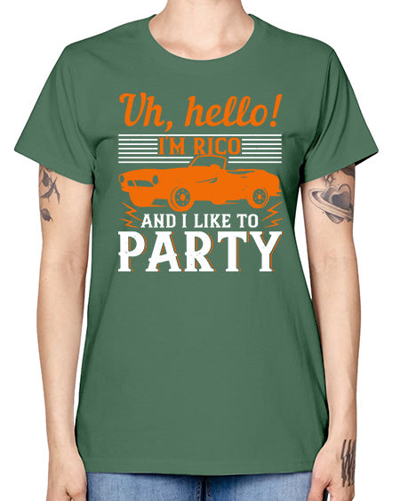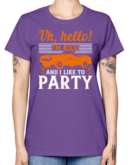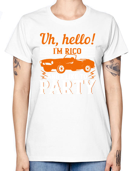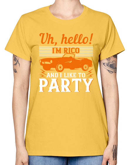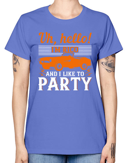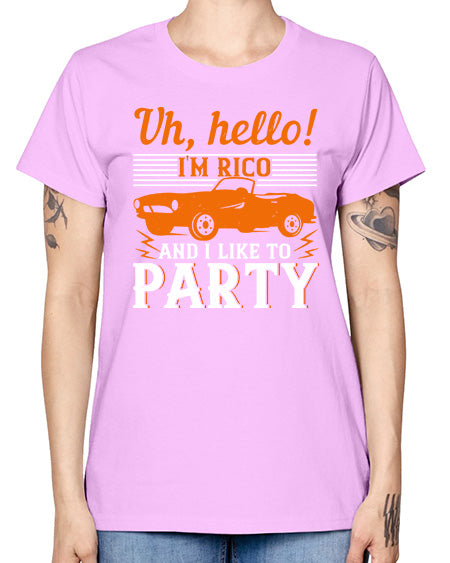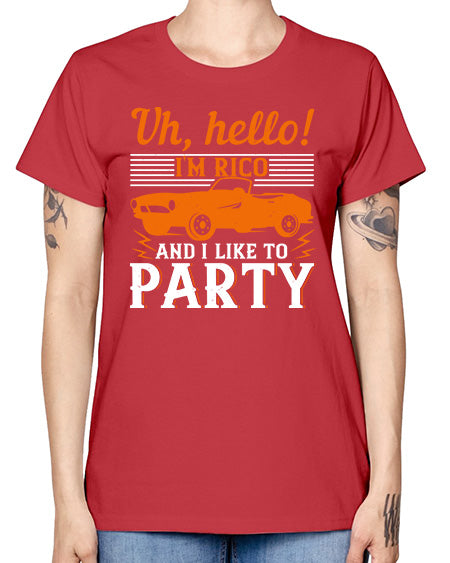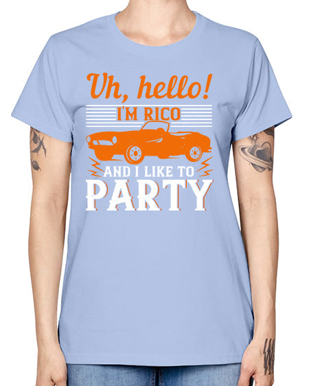 Uh hello Im Rico and I like to party 26# - hot rod- Missy T-Shirt
