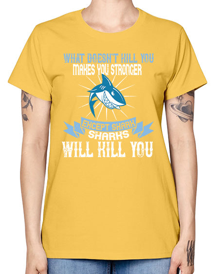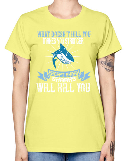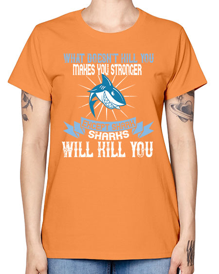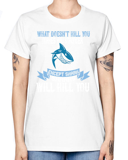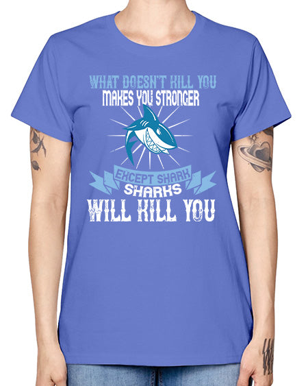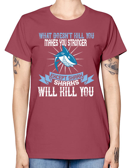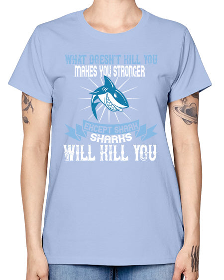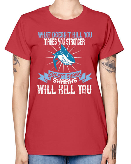 what doesnt kill you makes you stronger except shark sharks will kill you Style 4# - shark-fish- Missy T-Shirt