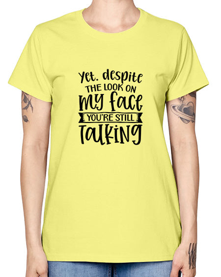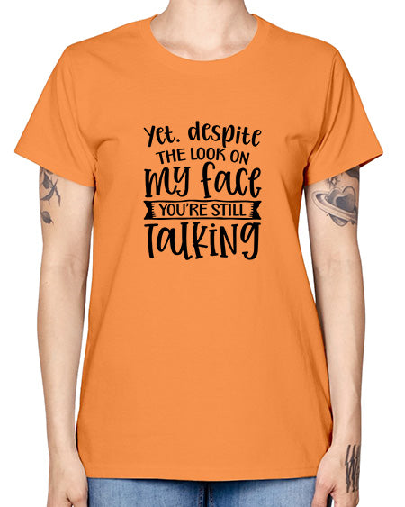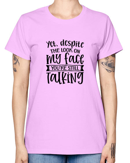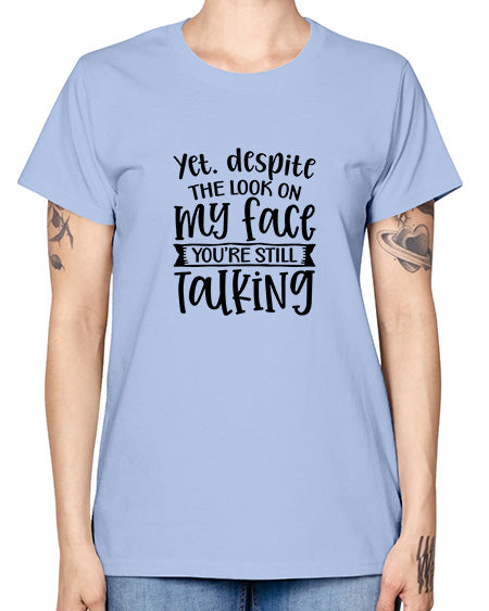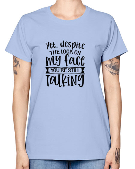 Yet despite the look on my face youre still talking 1263# - graphic- Missy T-Shirt