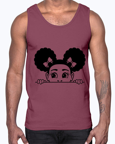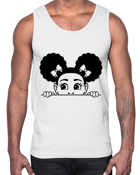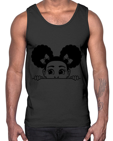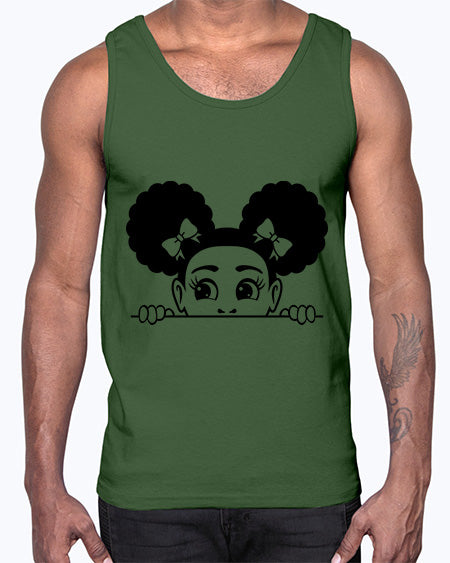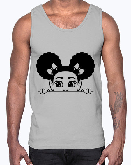 afro puffs girl peekaboo 80#- black girls or women- Cotton Tank