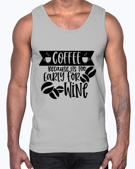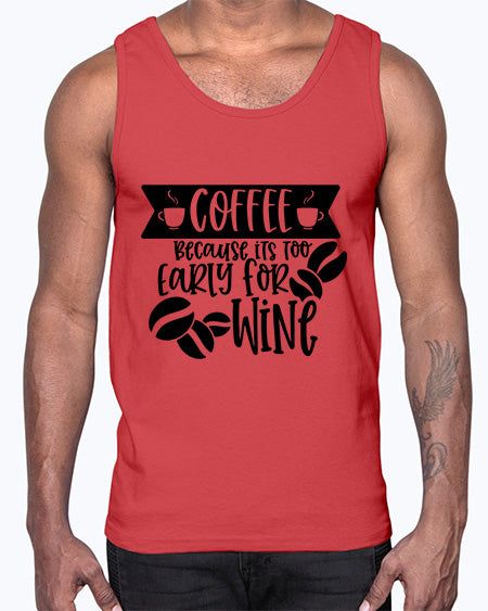 google-site-verification=jVrHOkW2AsgL_ozwUikqFQE6-Ke6U43Z8aLcUbXT5TE coffee because its too early for wine 759#- wine- Cotton Tank – Tshirt Unlimited