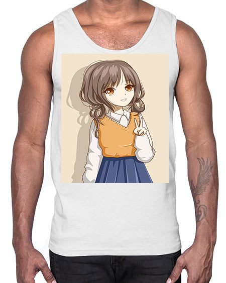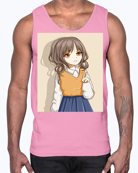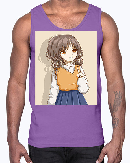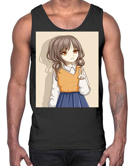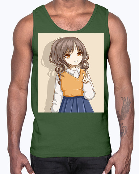 Cute and beautiful girl brown hair wearing uniform 71#- anime- Cotton Tank