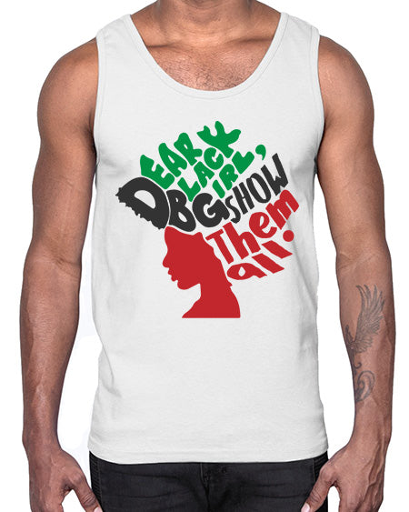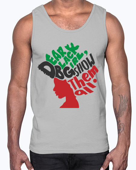 dear black girl show them all color 175#- black words and phrases- Cotton Tank