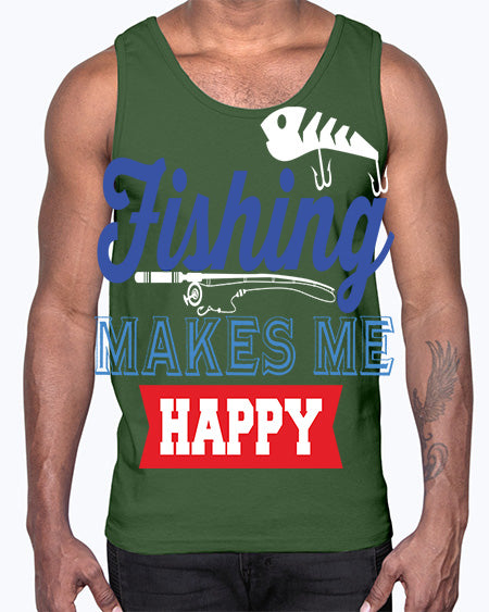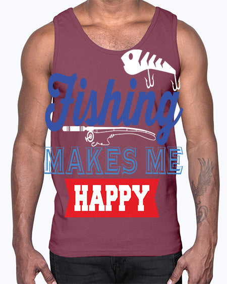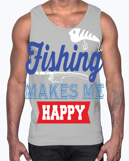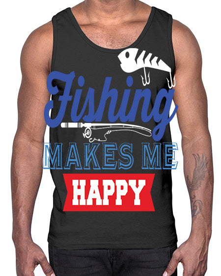 fishing makes me happy png 78#- shark-fish- Cotton Tank
