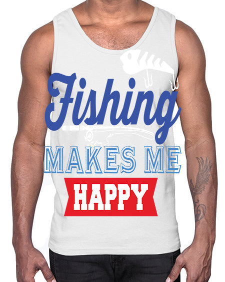 fishing makes me happy png 78# - shark-fish - Cotton Tank