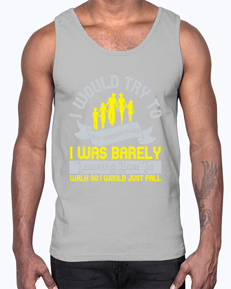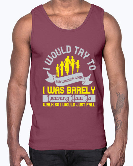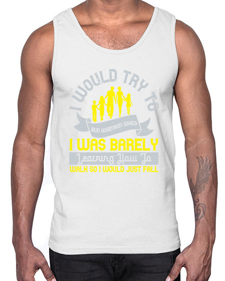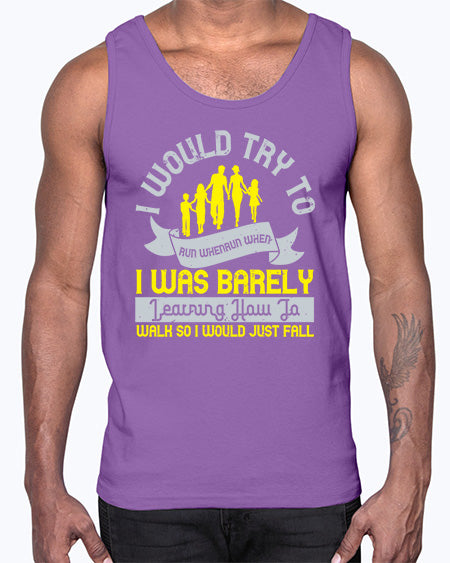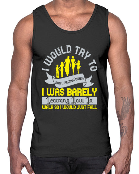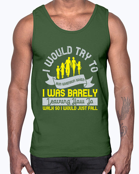 i would try to run whenrun when i was barely learing how to walk so i would just fall 310# - walking - Cotton Tank