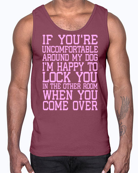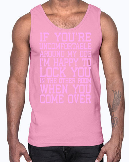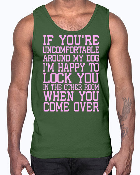 if youre uncomfortable around my dog go in the other room - dogs - Cotton Tank