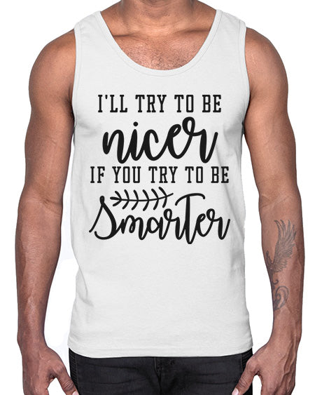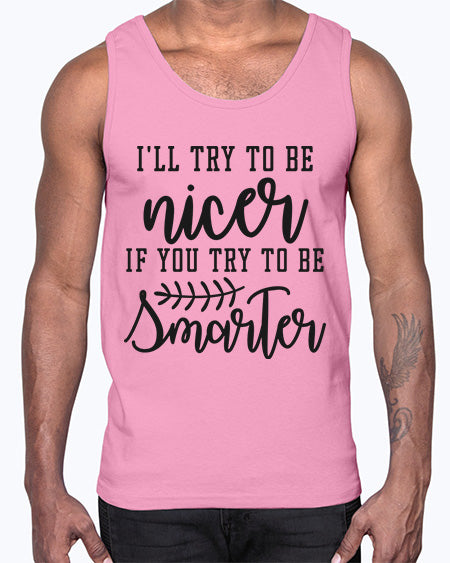 Ill try to be nicer if you try to be smarter 628#- funny- Cotton Tank