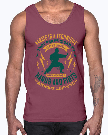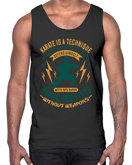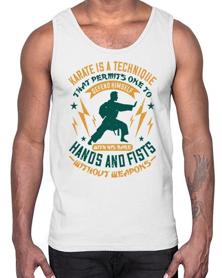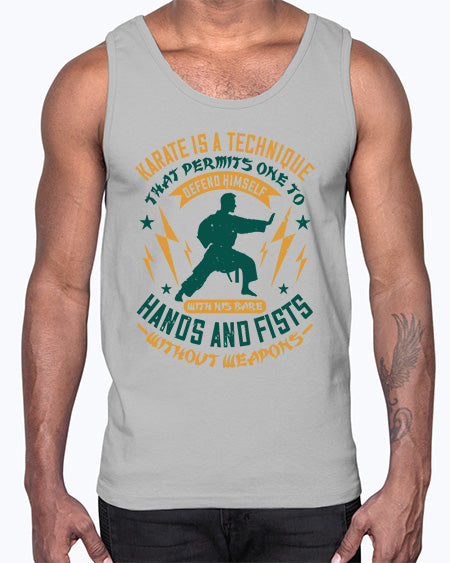 karate is a technique that permits one to defend himself with his bare hands and fists without weapons 389#- karate MMA- Cotton Tank