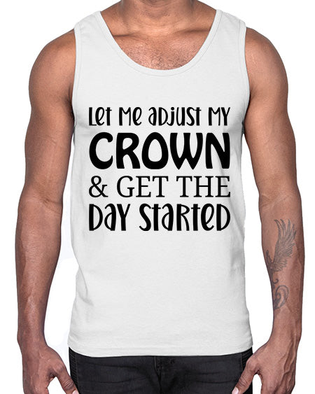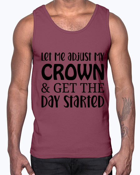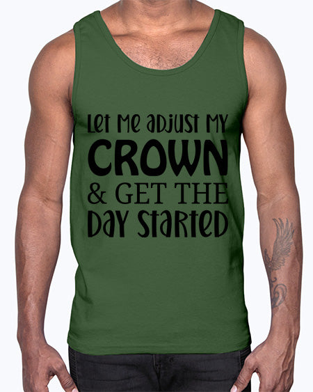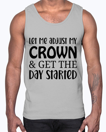 let me adjust my crown and get the day started 714#- funny- Cotton Tank