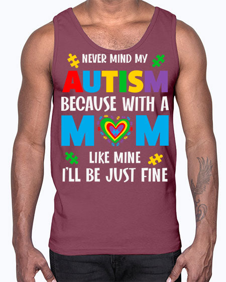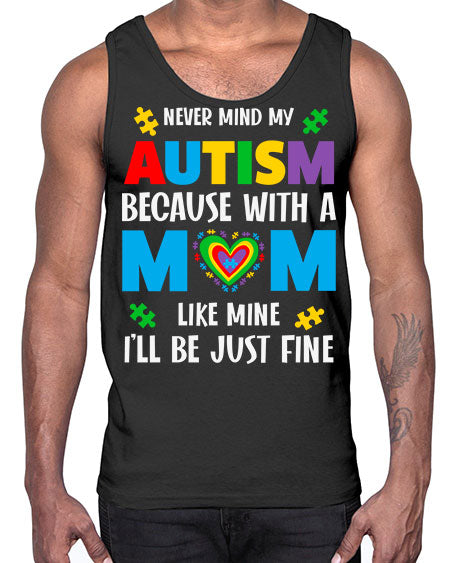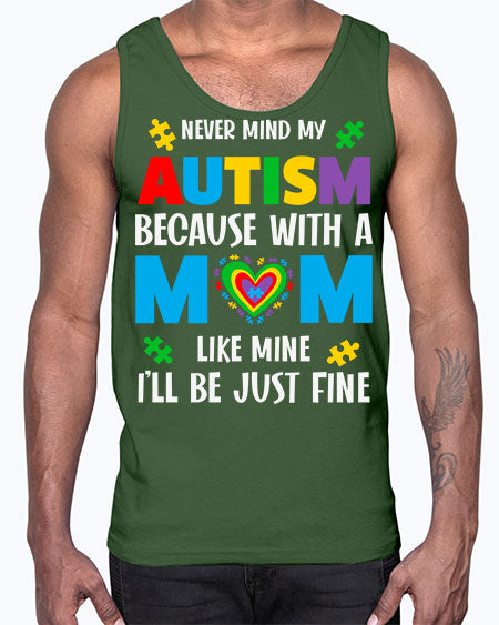 mom autism never mind my 107#- autism- Cotton Tank