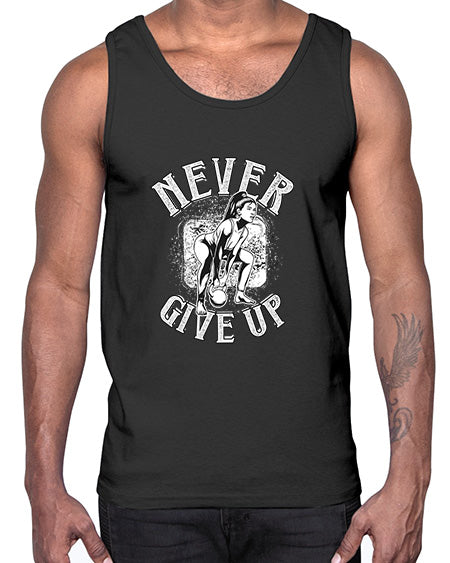 never give up 463#- gym- Cotton Tank