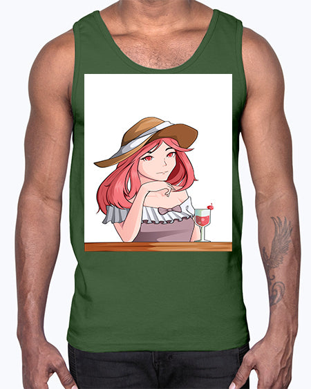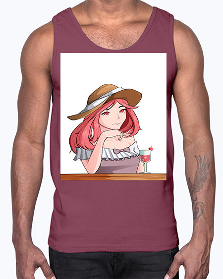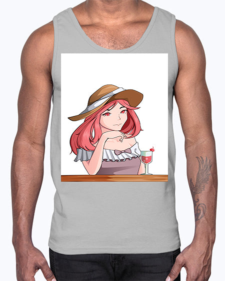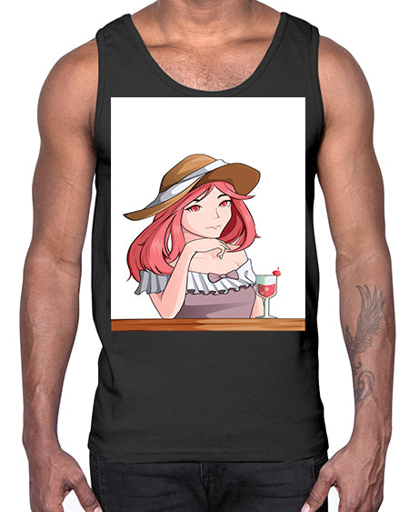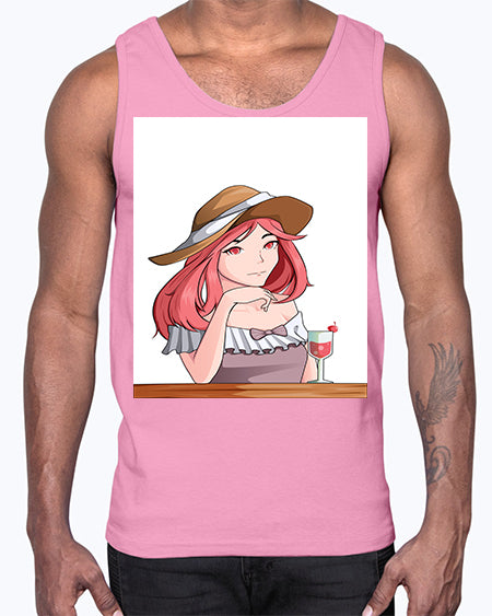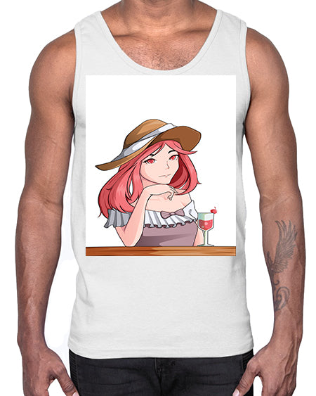 pretty woman with fresh juice in summer 37#- anime- Cotton Tank
