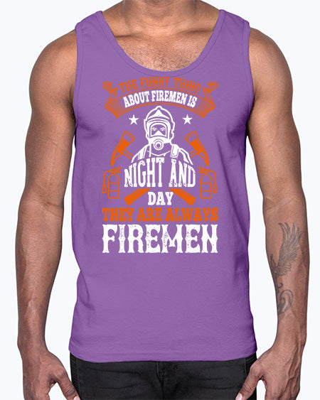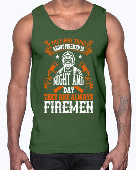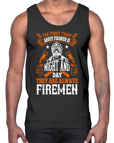 The funny thing about firemen is night and day they are always firemen Style 1512# - fire fighter - Cotton Tank