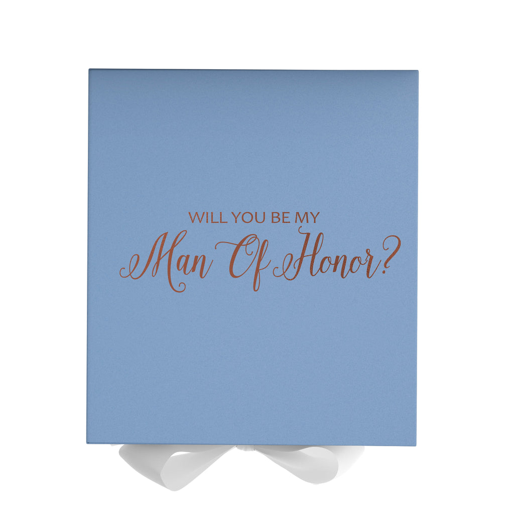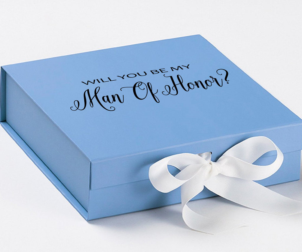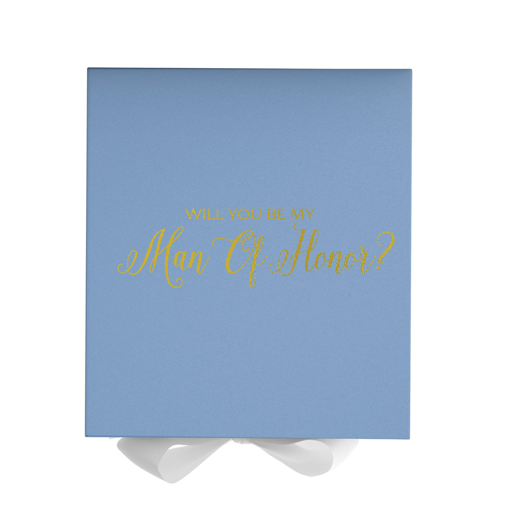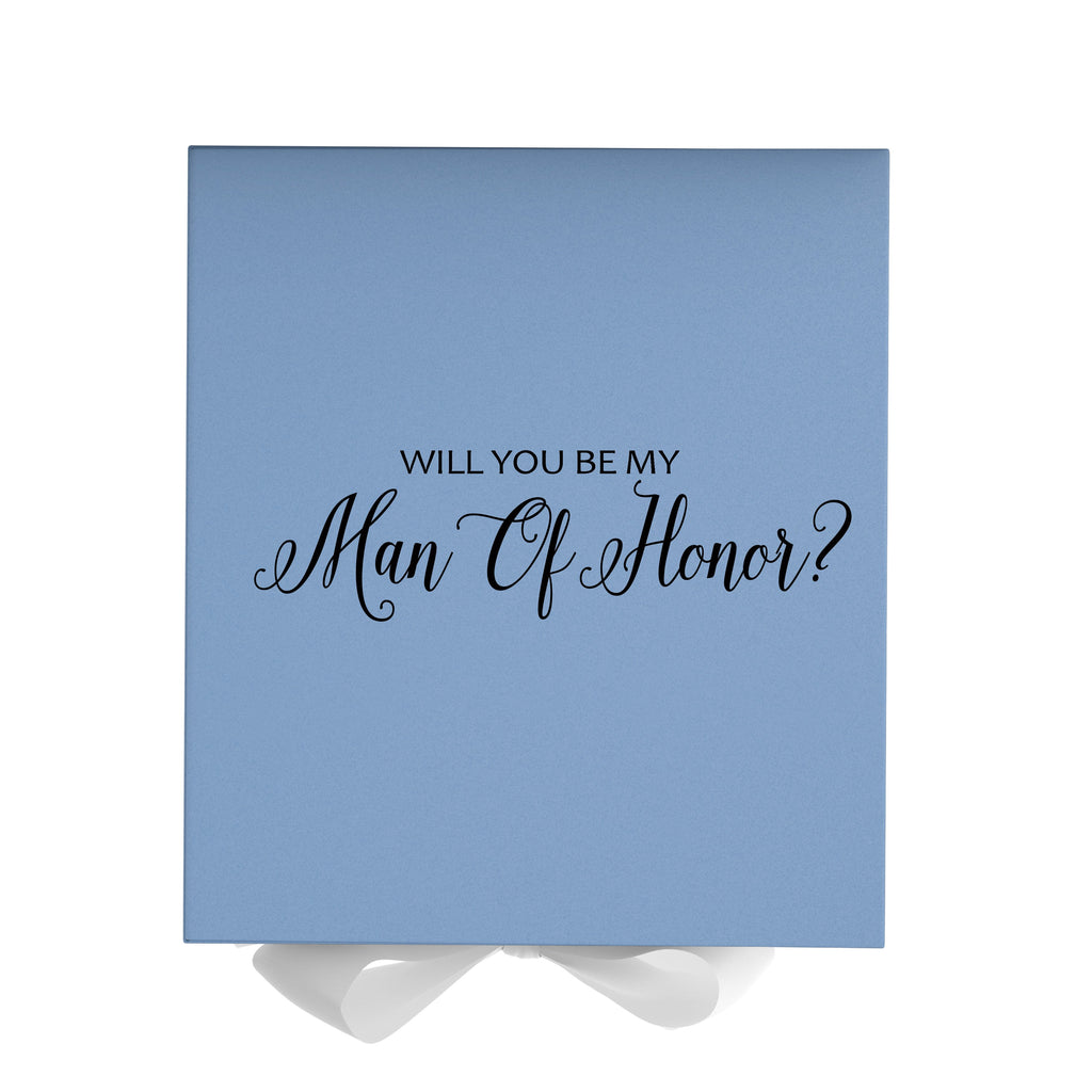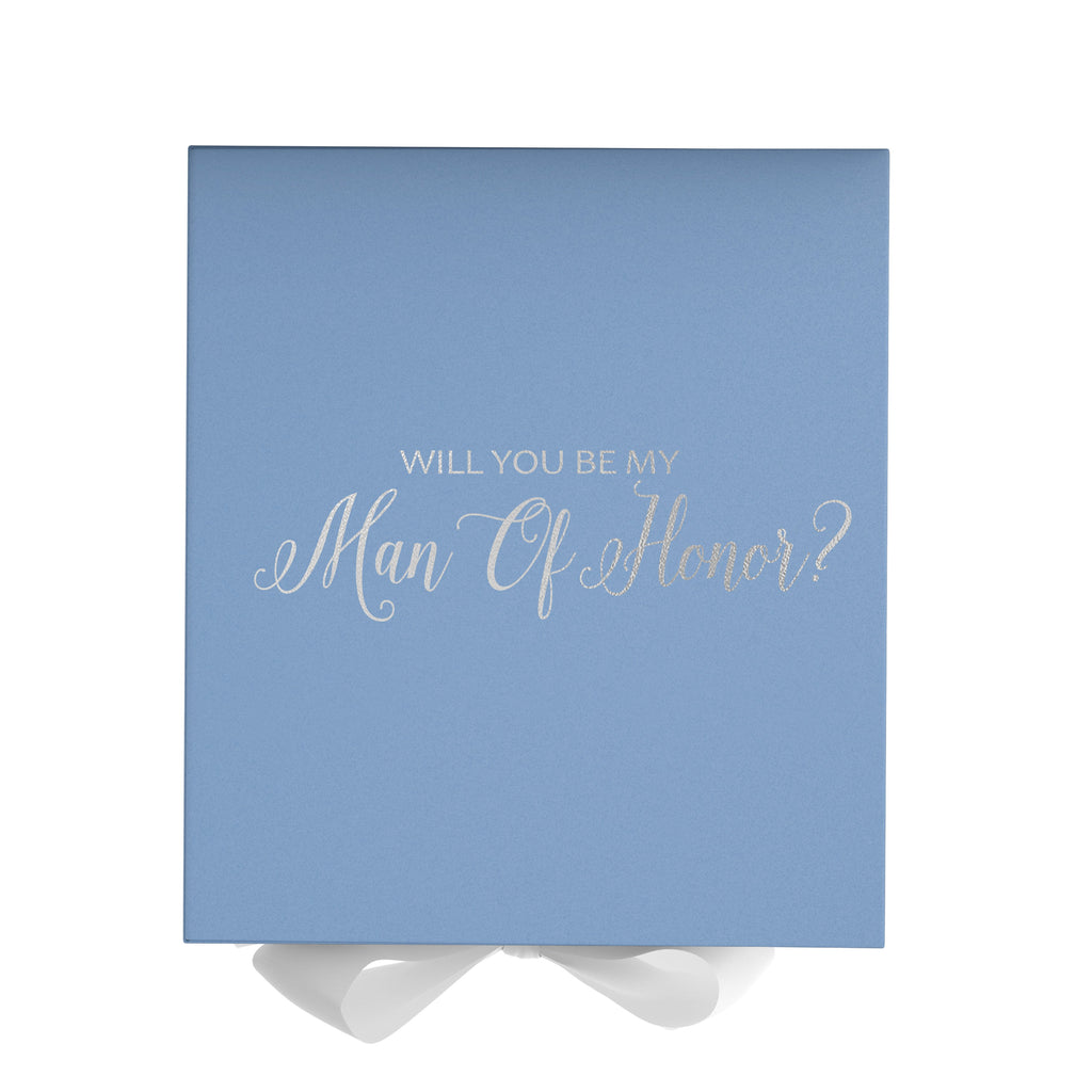 Will You Be My Man of Honor? Proposal Box Light Blue w/ white Bow- No Border