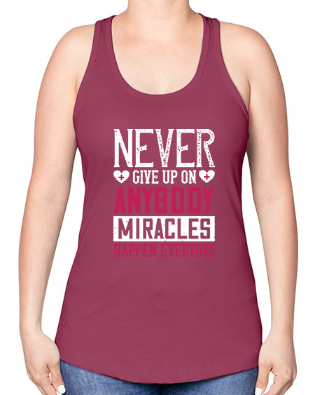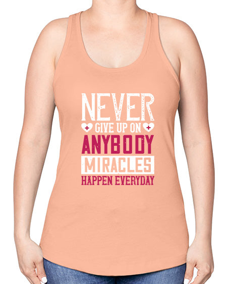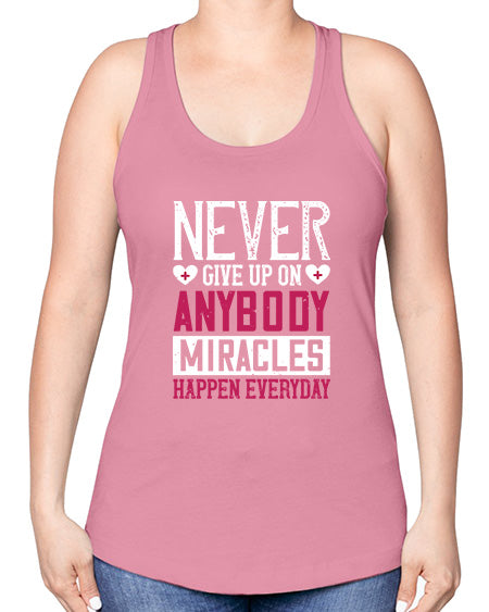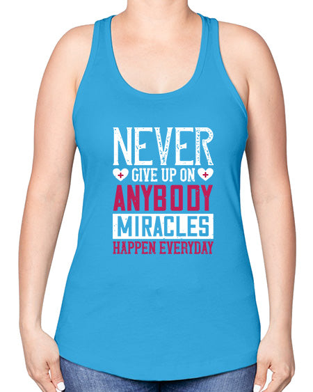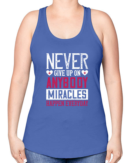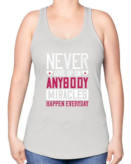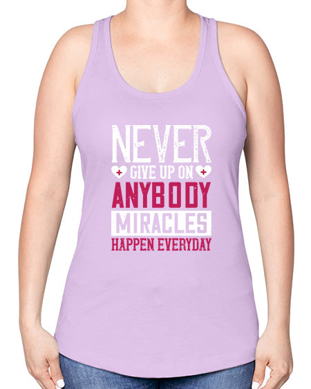 Never give up on anybody Miracles happen everyday Style 310#- nurse -Racerback Tank