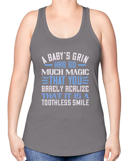 A baby’s grin has so much magic that you barely realize that it is a toothless smile Style 263#- babies -Racerback Tank