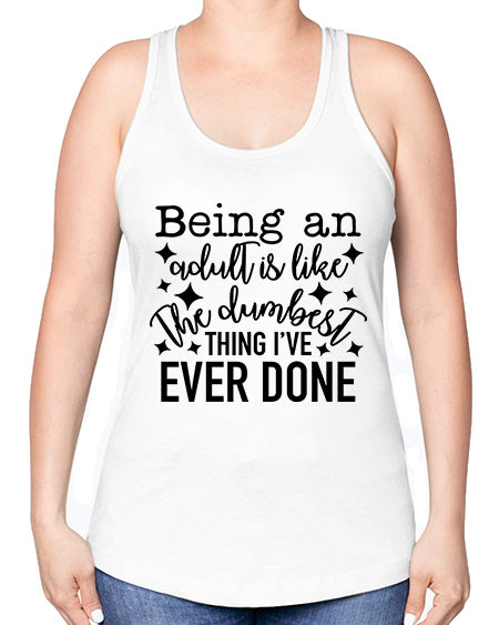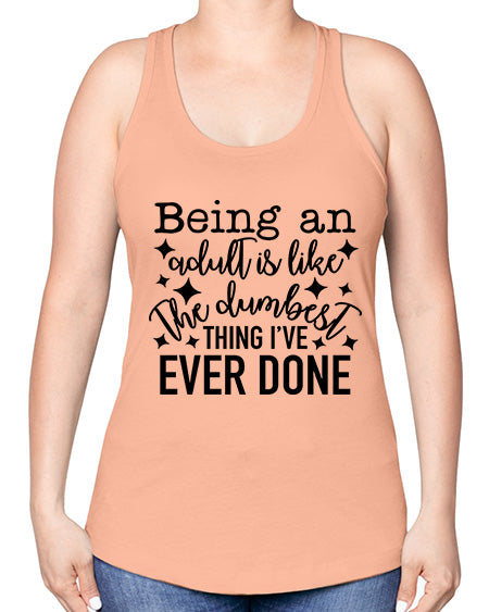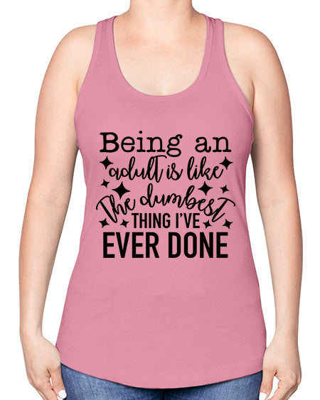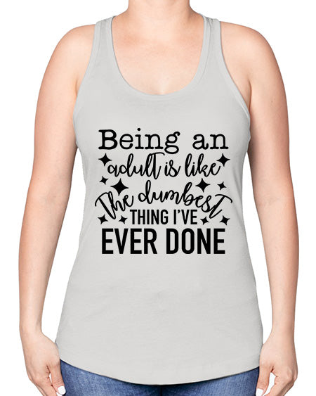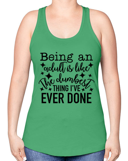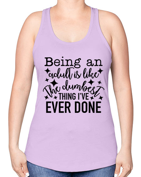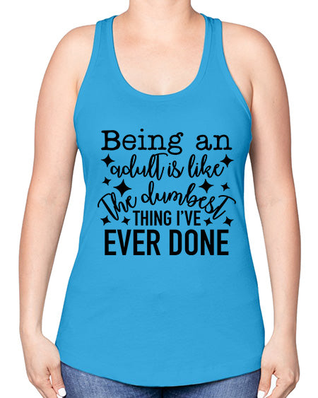 being an adult is like the dumbest thing ive ever done 258#- graphic -Racerback Tank