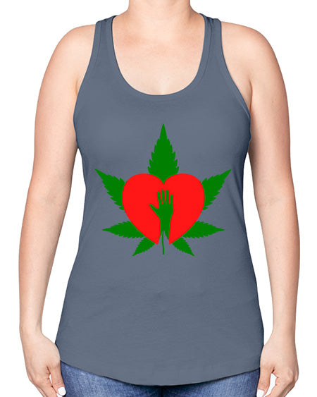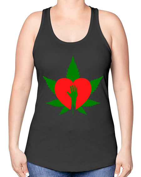 cannabis heart with hand 310#- graphic -Racerback Tank
