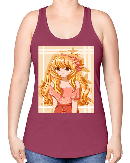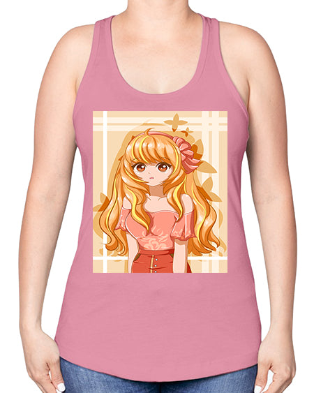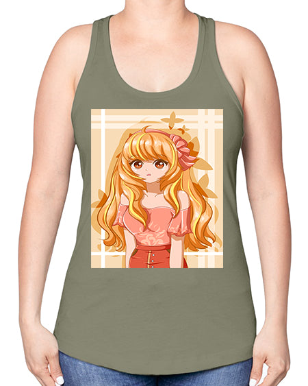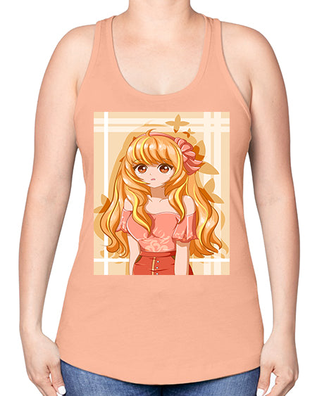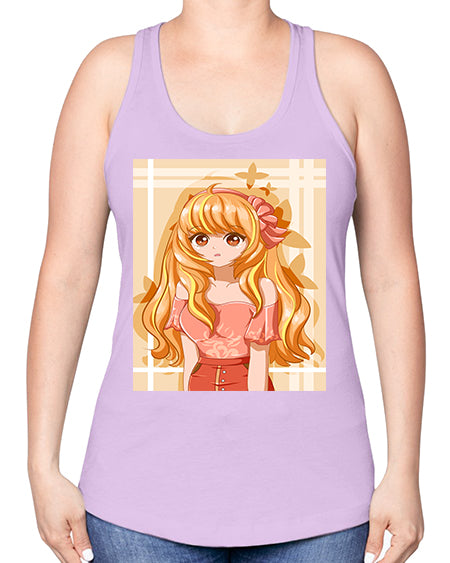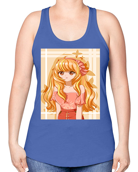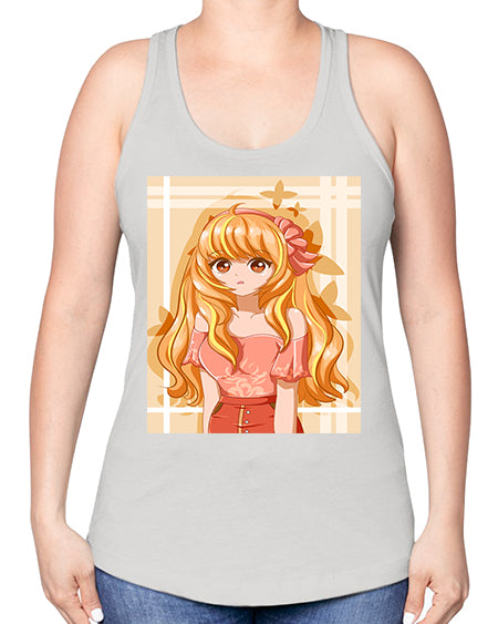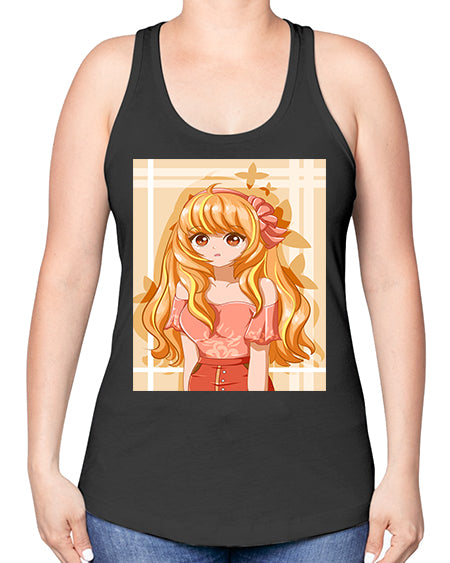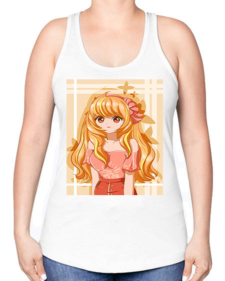 Cute and beautiful girl blonde hair with ribbon 110# - anime -Racerback Tank
