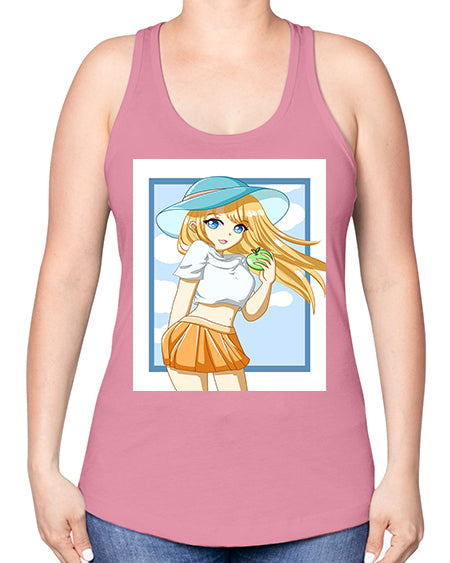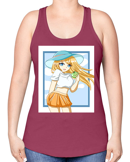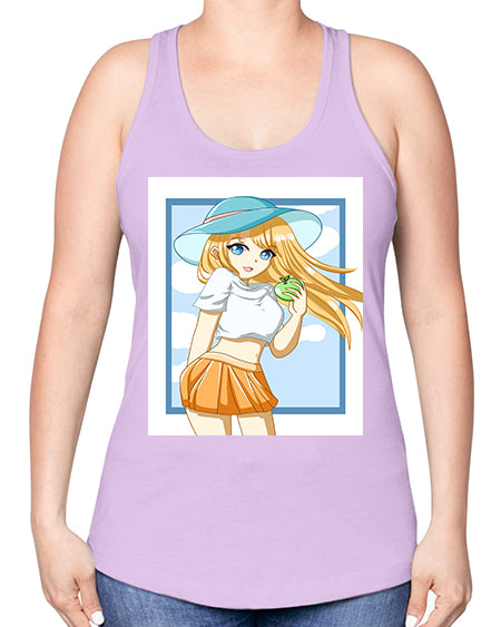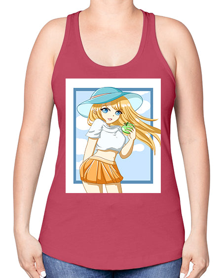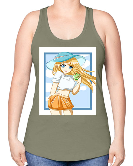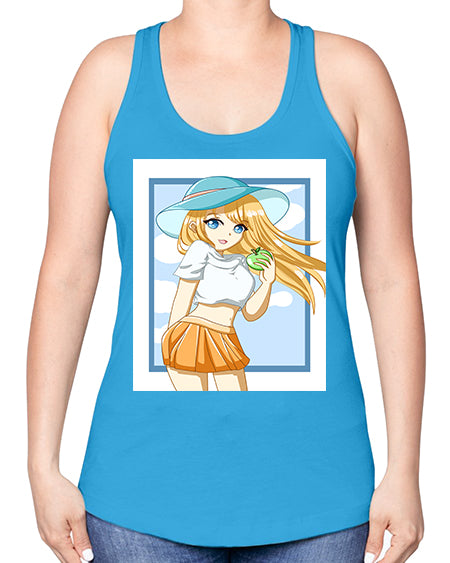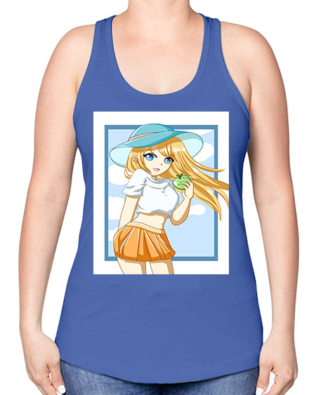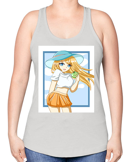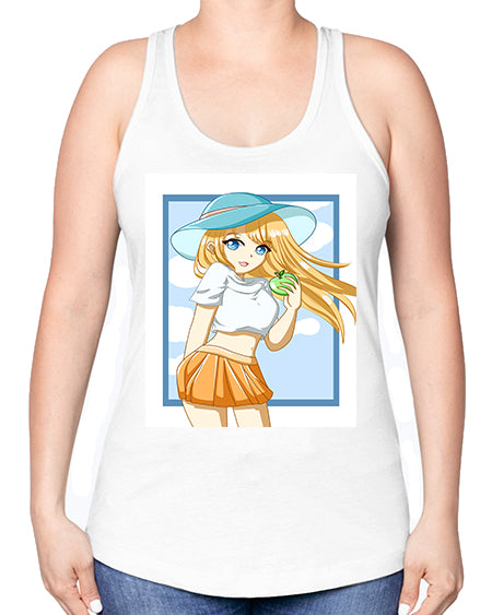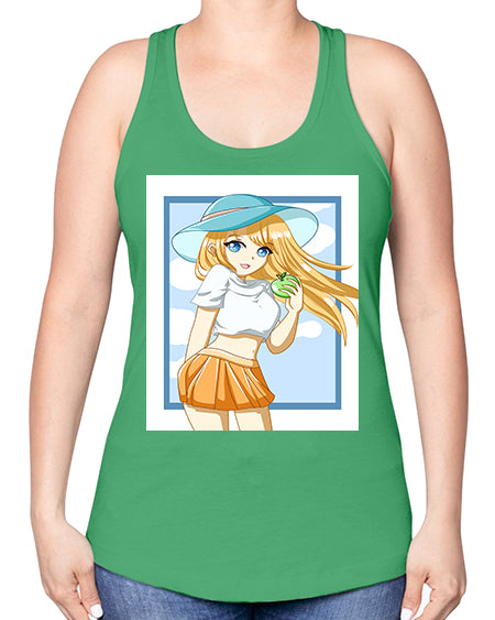 Cute and beautiful girl yellow hair with apple in the summer 158# - anime -Racerback Tank