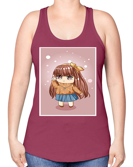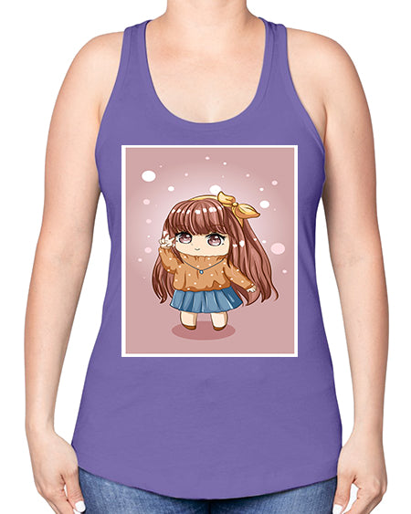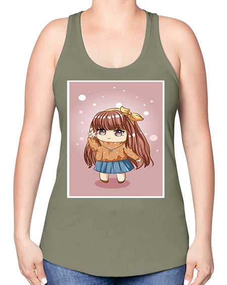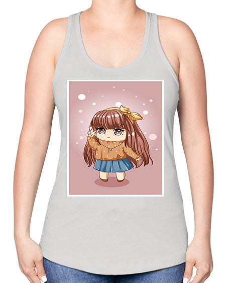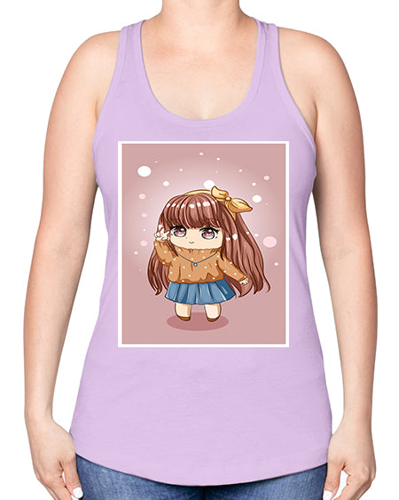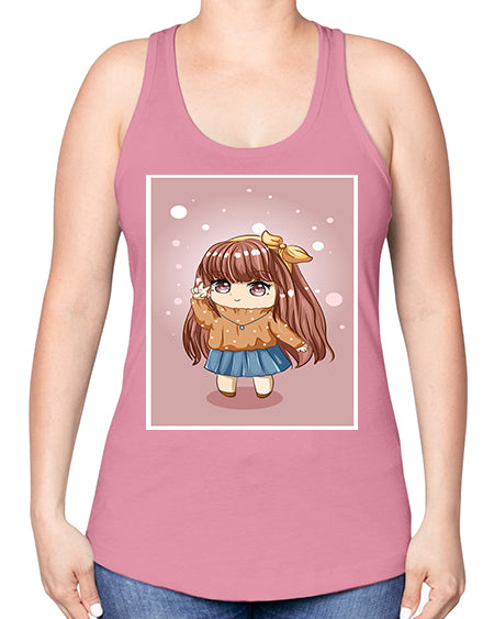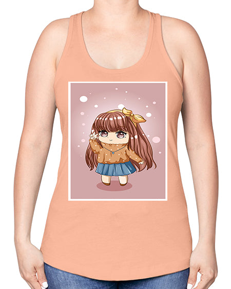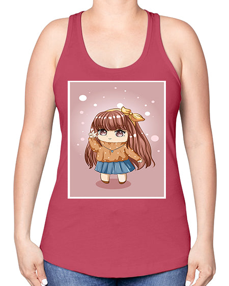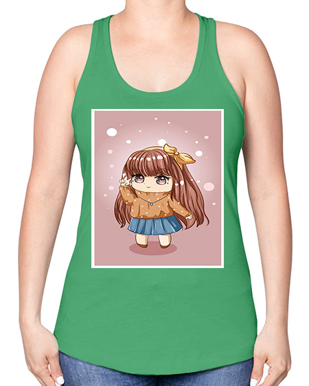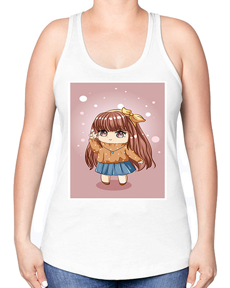 Cute and beautiful little girl long brown hair 149# - anime -Racerback Tank