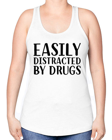 easily distracted by drugs 734#- pharmacist -Racerback Tank