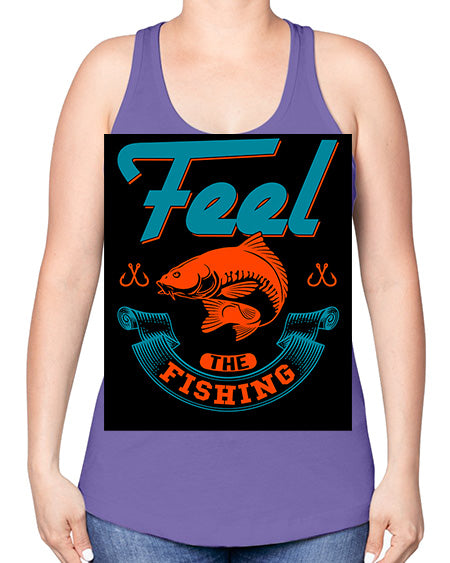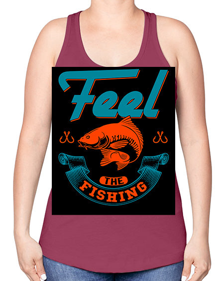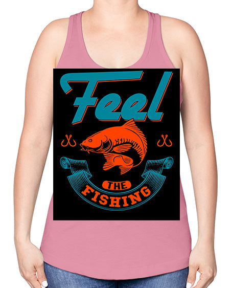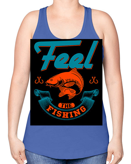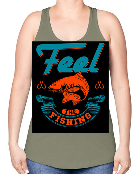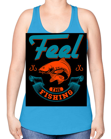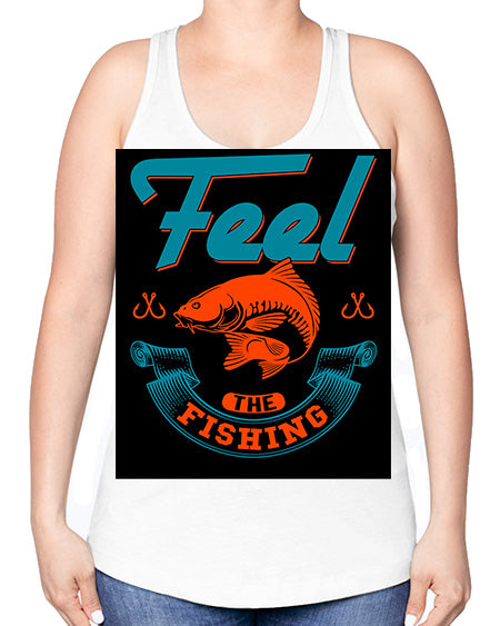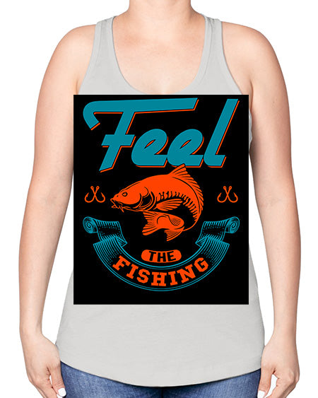 feel the fishing png 60#- shark-fish -Racerback Tank