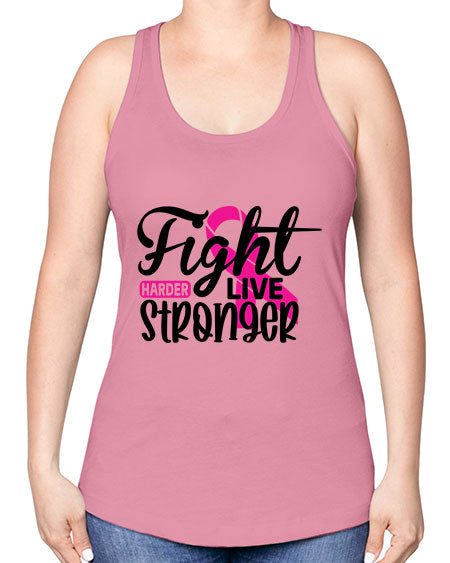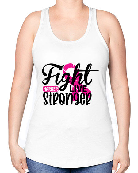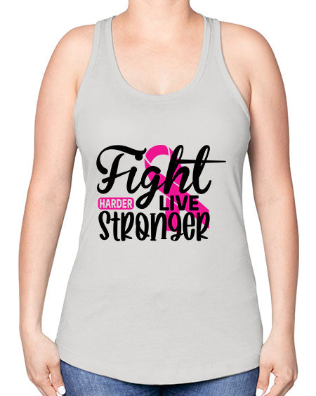 Fight Harder Live Stronger 27# - breast cancer -Racerback Tank