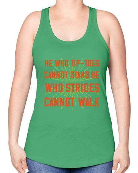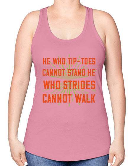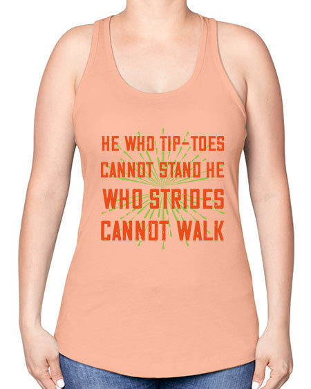 he who tiptoes cannot stand he who strides cannot walk 255# - walking -Racerback Tank