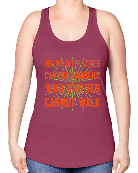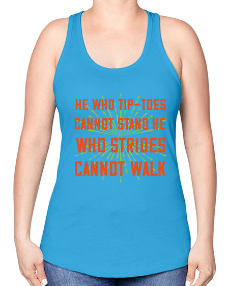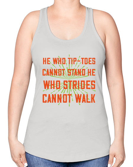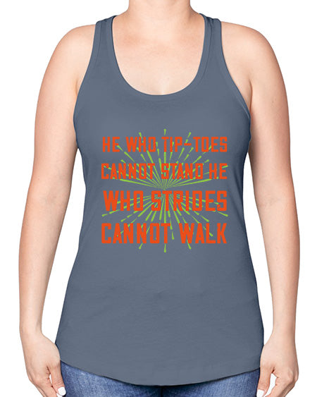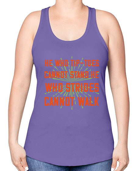 he who tiptoes cannot stand he who strides cannot walk 255#- walking -Racerback Tank