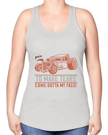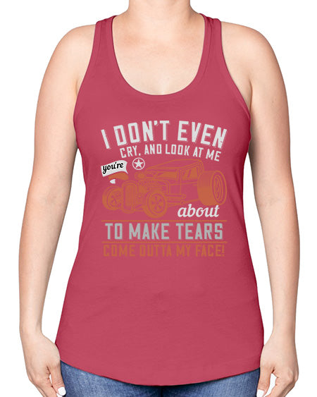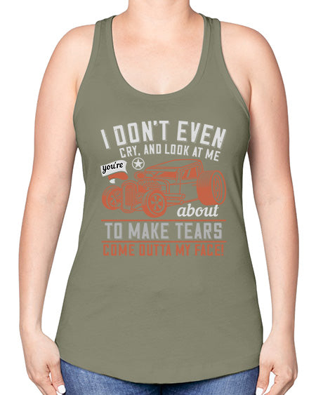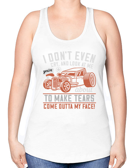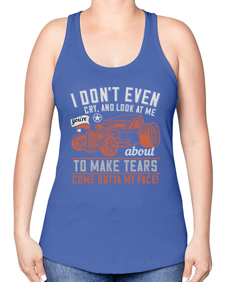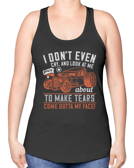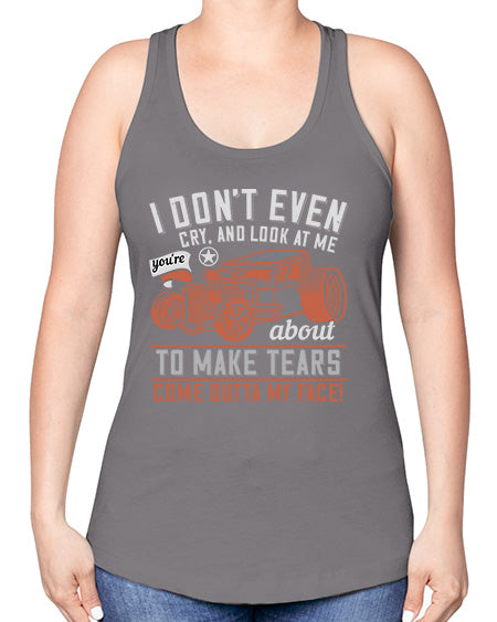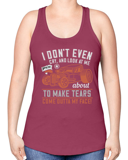 I dont even cry and look at me youre about to make tears come outta my face 103#- hot rod -Racerback Tank