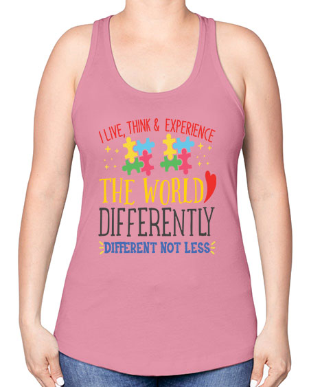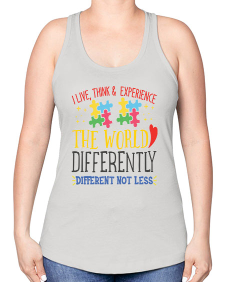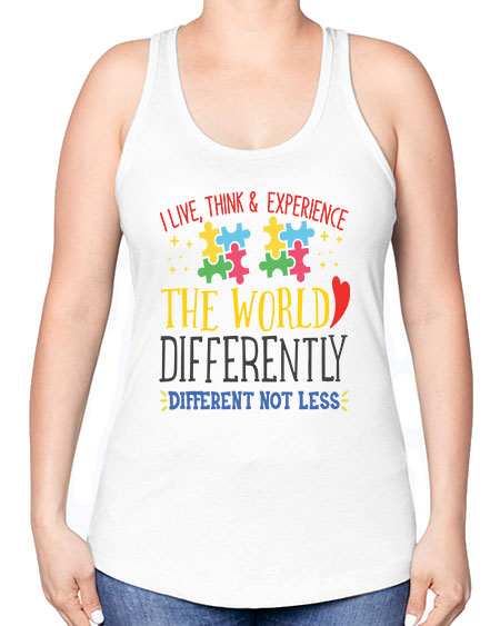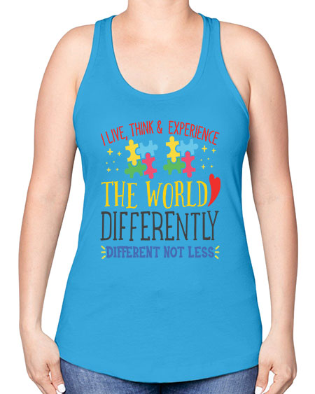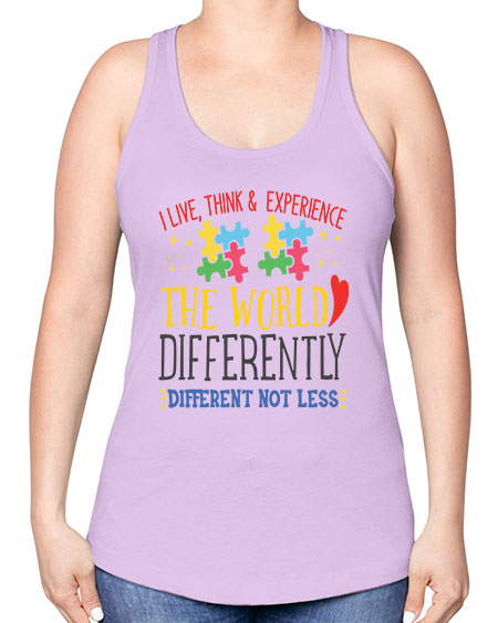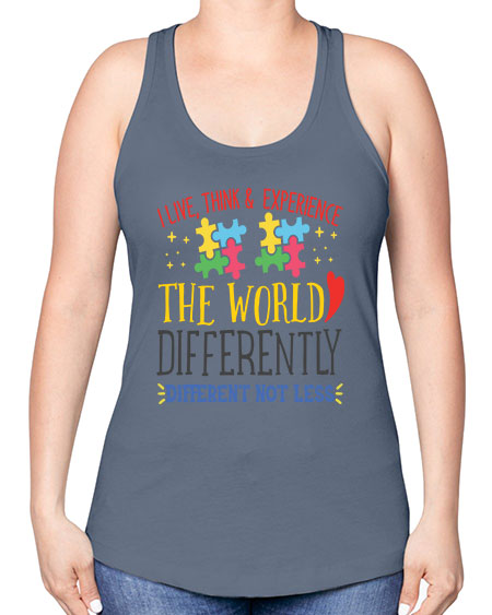 i live think experience the world differently different not less Style 20# - autism -Racerback Tank