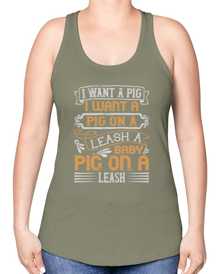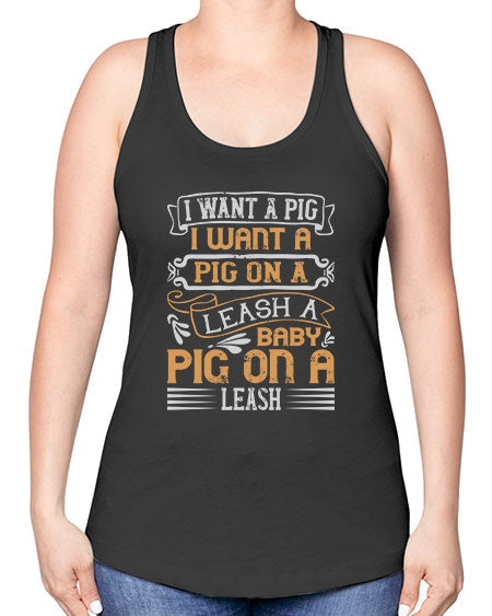 I want a pig I want a pig on a leash A baby pig on a leash Style 66#- pig -Racerback Tank
