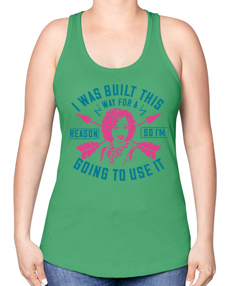 I was built this way for a reason so I’m going to use it Style 24# - black afro -Racerback Tank
