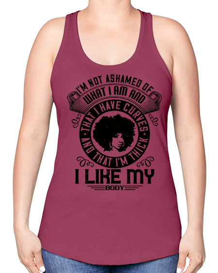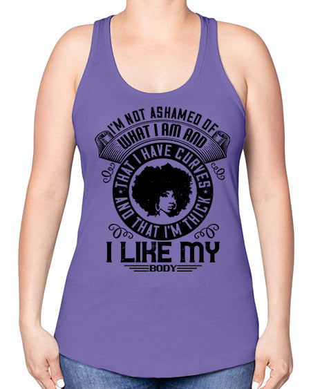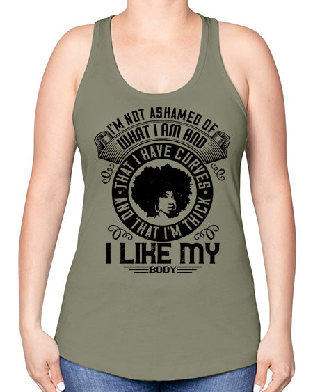 Im not ashamed of what I am and that I have curves and that Im thick I like my body Style 22#- Sub -Racerback Tank