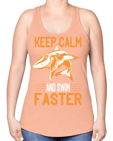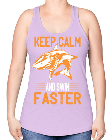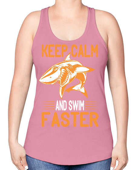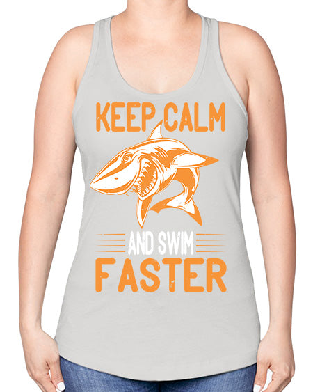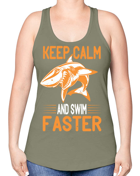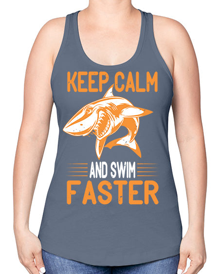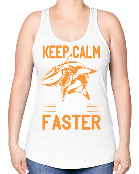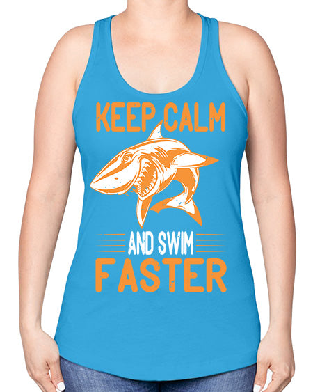 keep calm and swim faster Style 58#- shark-fish -Racerback Tank