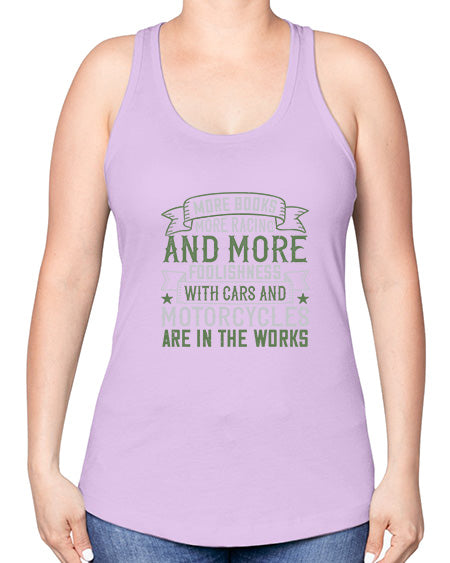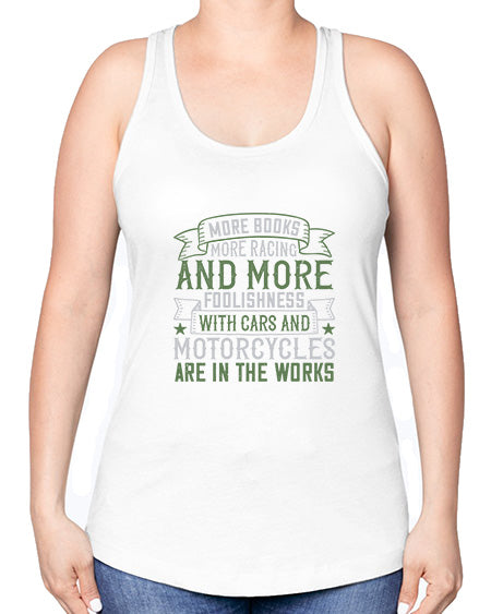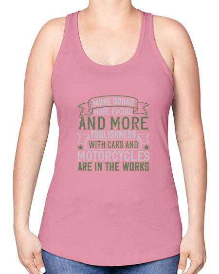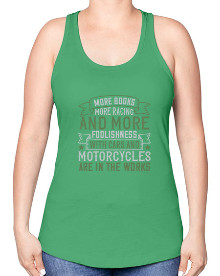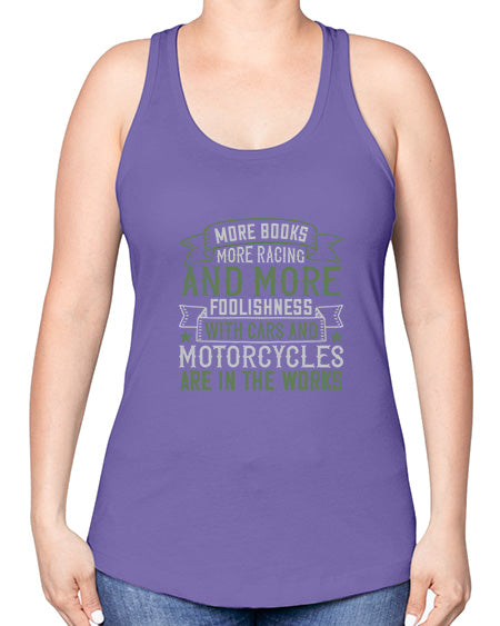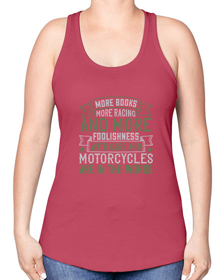 More books more racing and more foolishness with cars and motorcycles are in the works 45#- car -Racerback Tank