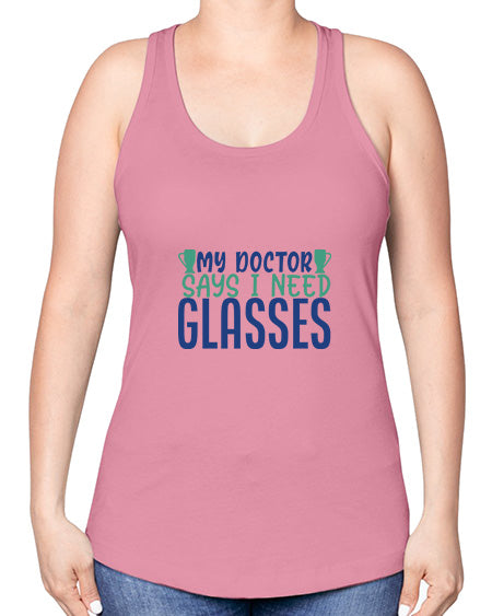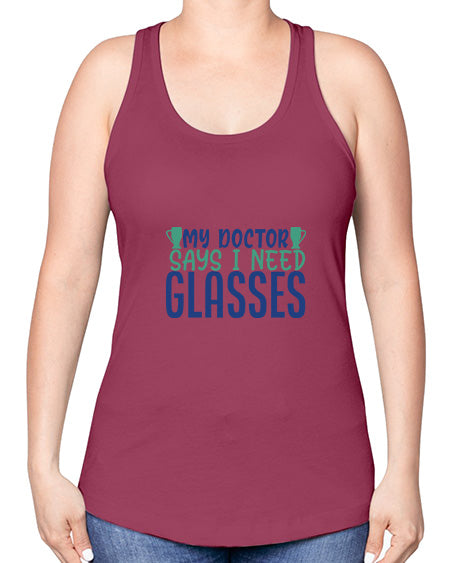 my doctor says i need glasses 351#- wine -Racerback Tank