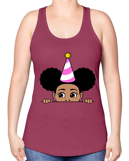 peekaboo afro puffs birthday girl 24#- Sub -Racerback Tank