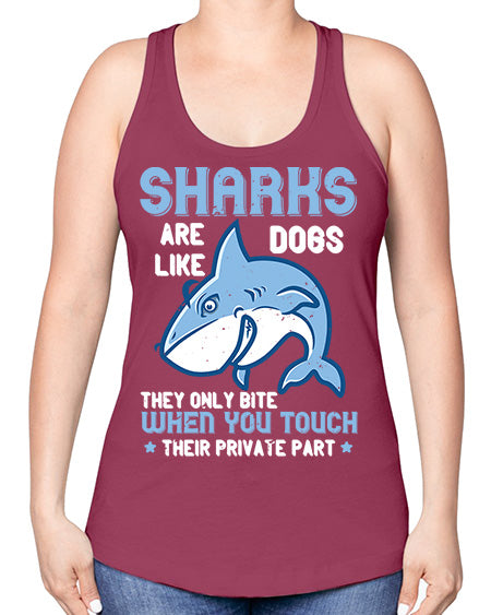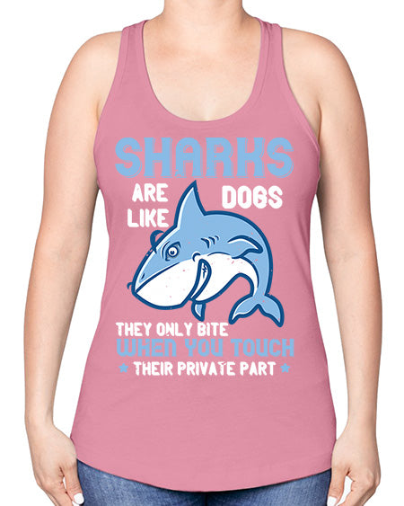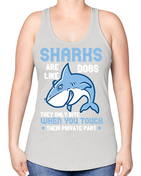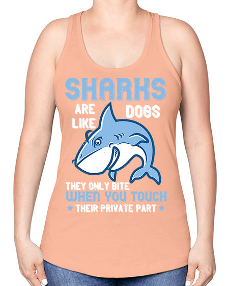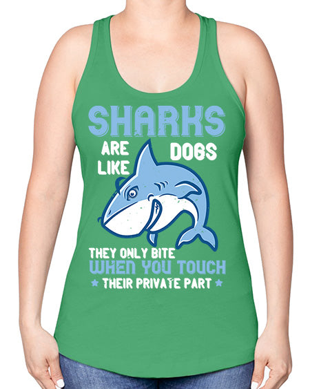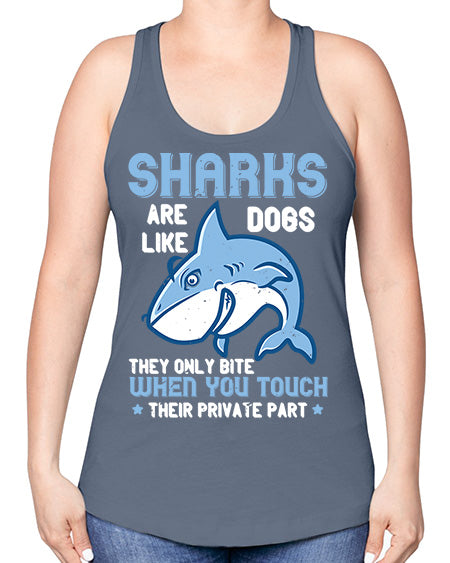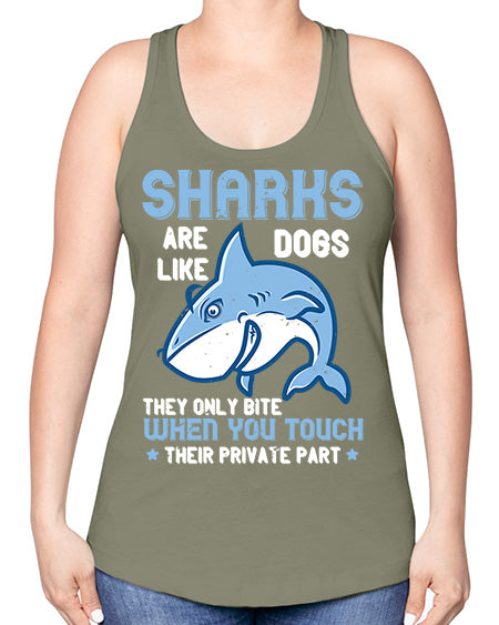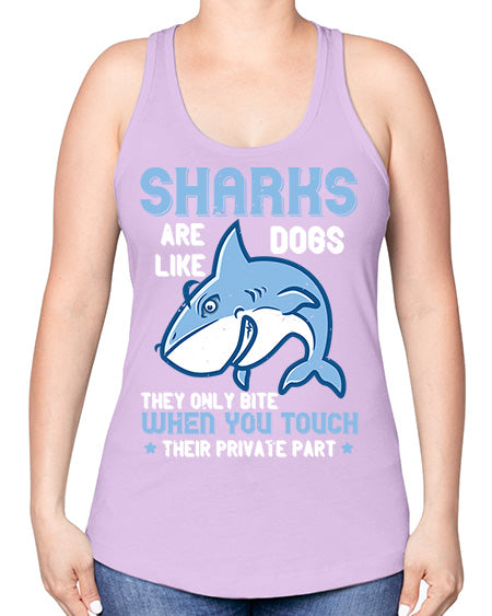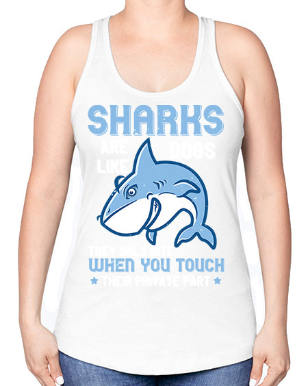 Sharks are like dogs They only bite when you touch their private part Style 38#- shark-fish -Racerback Tank