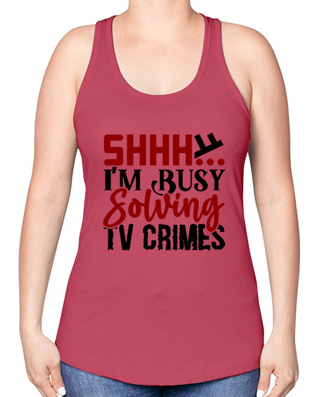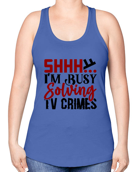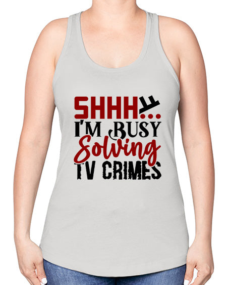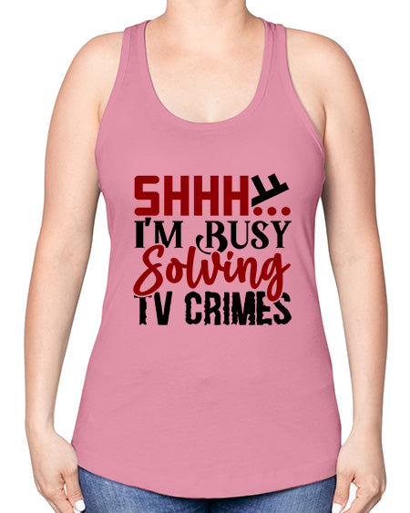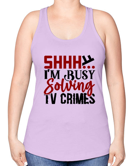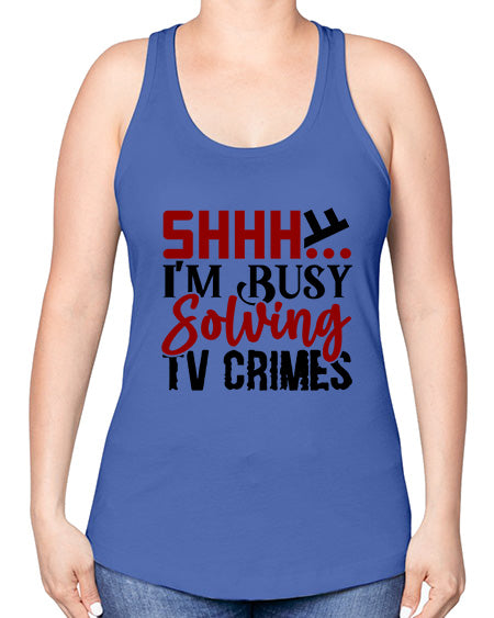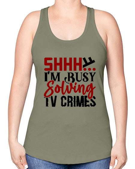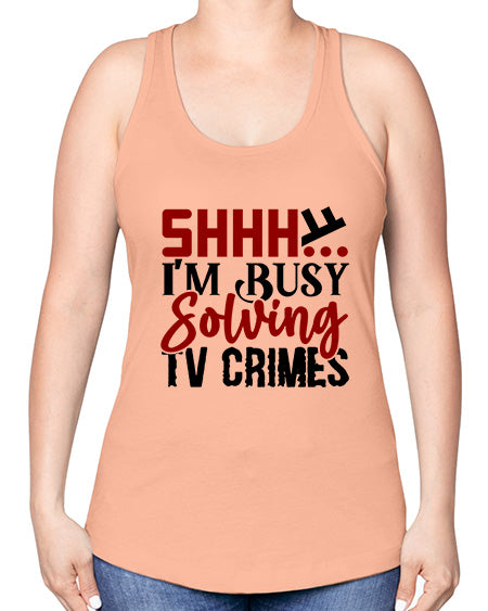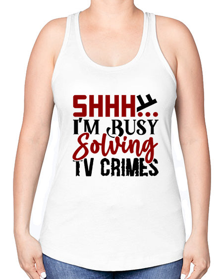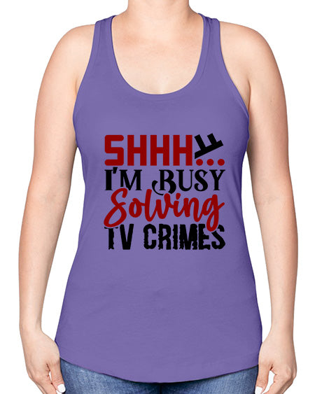 shhh im busy solving tv crimes 1040#- graphic -Racerback Tank