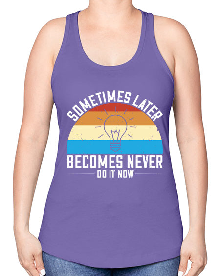Sometimes later becomes never Do it now Style 24# - motivation -Racerback Tank