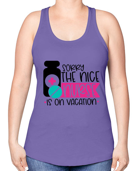 Sorry The Nice Nurse Is On Vacation Style Style 1421#- nurse -Racerback Tank