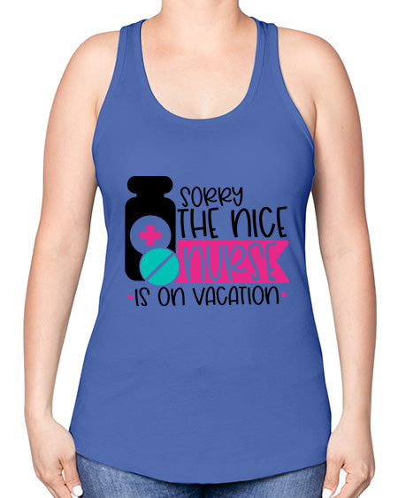 Sorry The Nice Nurse Is On Vacation Style Style 1421# - nurse -Racerback Tank
