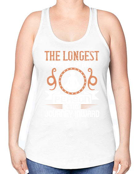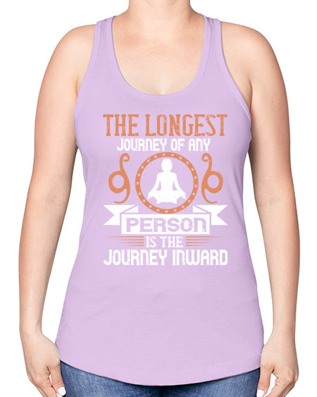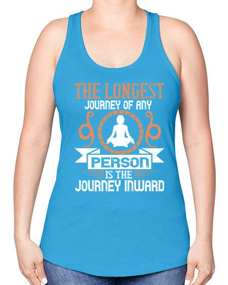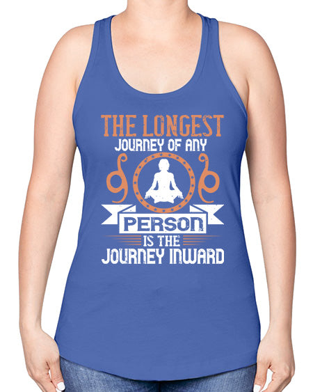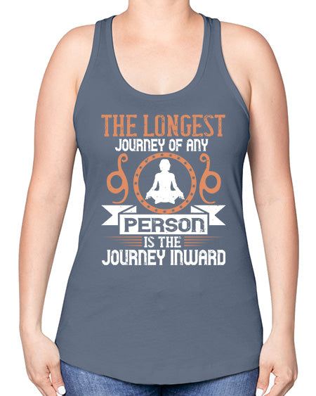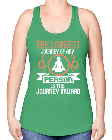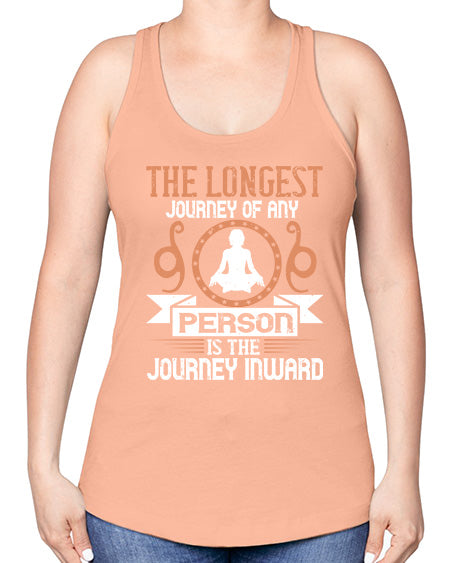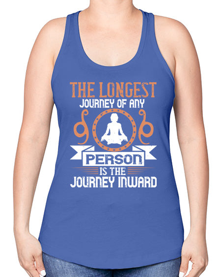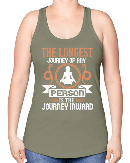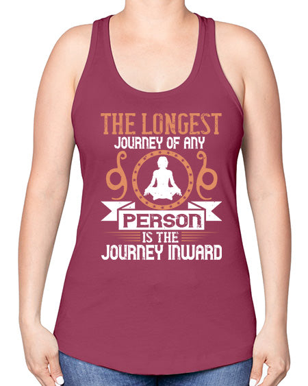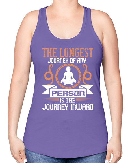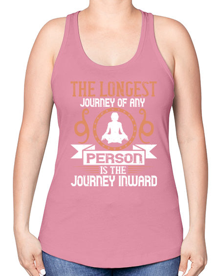 the longest journey of any person is the journey inward 550# - yoga -Racerback Tank